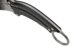 El Extrema Ratio K-Talon es un cuchillo de karambit compacto. El cuchillo es increíblemente robusto gracias a su construcción full-tang. Esto significa que la hoja y el anillo están hechos de una sola pieza de acero, en la que se montan las cachas.