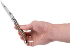 El Forge de Laguiole 1211 es un buen cuchillo Laguiole, por un precio increíble. La hoja está pulida, al igual que los cabezales. El mango está hecho de micarta. Se trata de un material compuesto de lino y resina sintética.