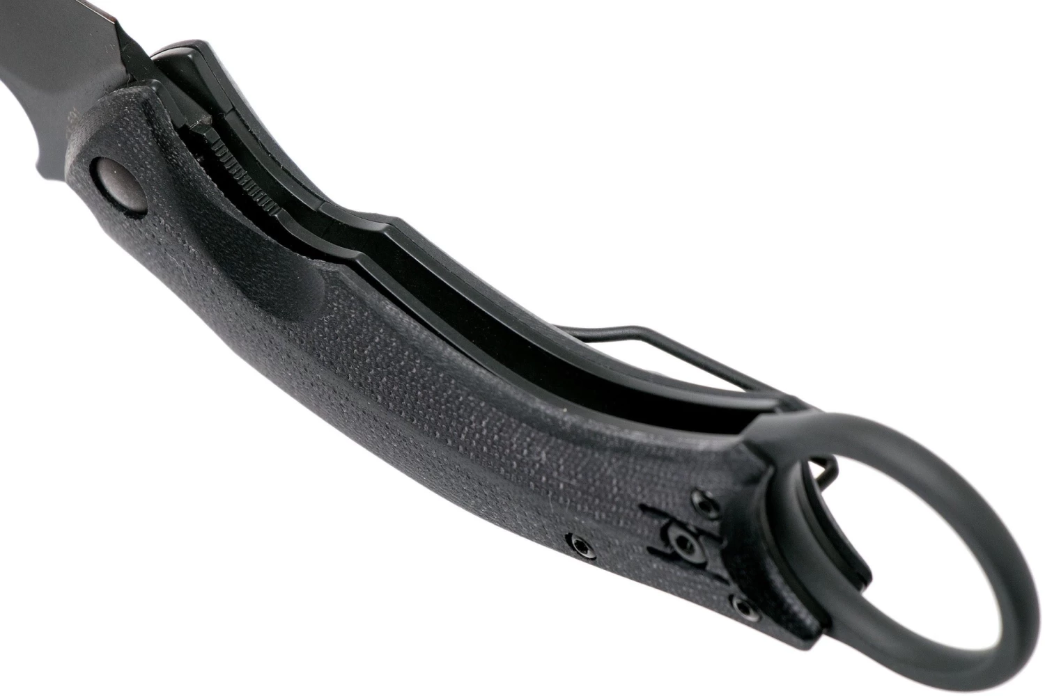 El Fox Black Bird Bastinelli FX-591 es un cuchillo karambit genial, diseñado por Bastinelli Designs. Diseñó la navaja de tal manera que puedes ponerte a trabajar inmediatamente cuando la sacas de tu bolsillo. El lomo está concretamente realzado con un abridor de ondas. Se enganchará detrás del borde de tu bolsillo, abriendo la hoja. No hay forma más rápida de abrir un cuchillo.