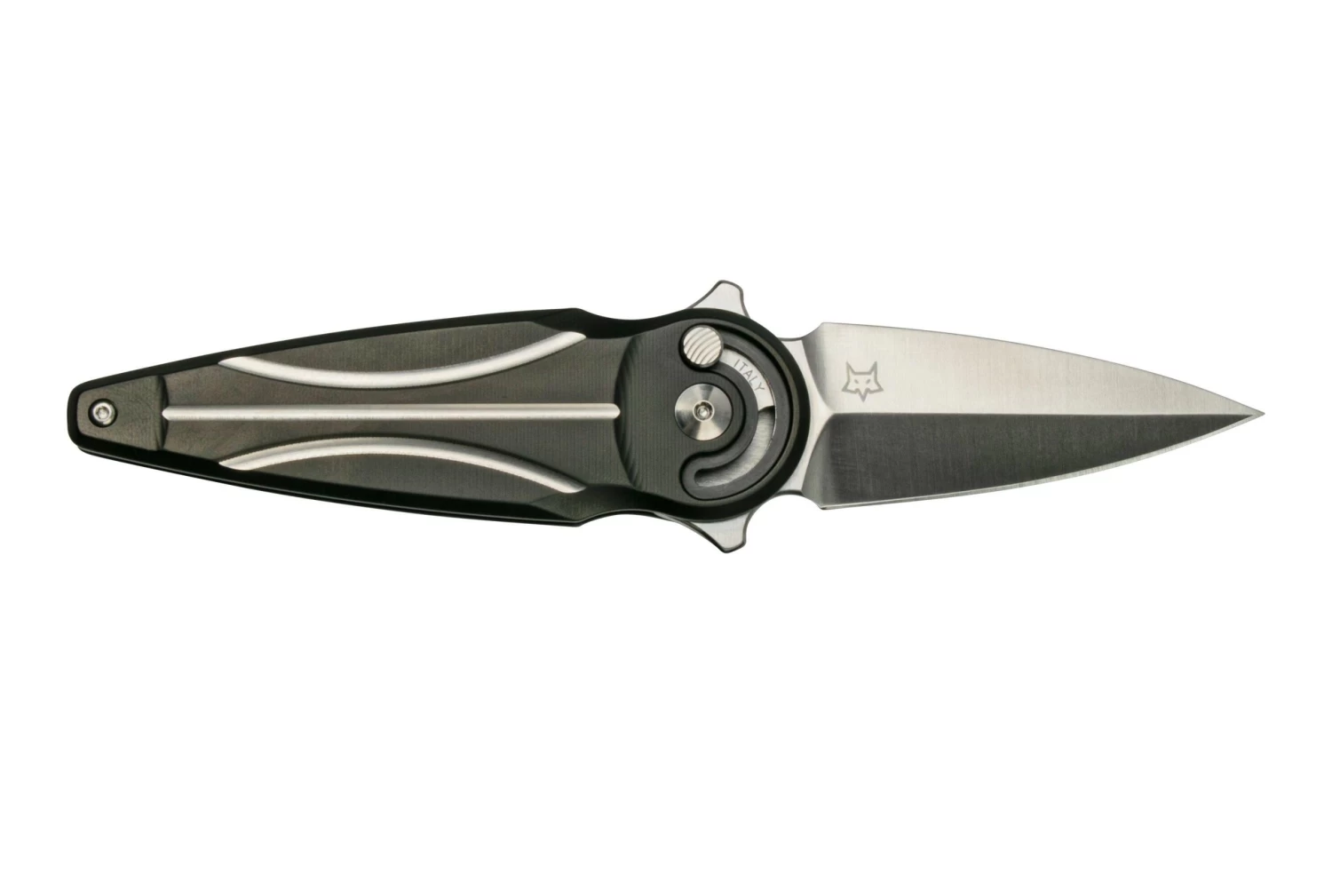 Con el Fox Saturn, Fox demuestra una vez más que pertenece a la cima absoluta de la producción de cuchillos. El fresado del mango es precioso y el acabado es de primera. El Saturn es un diseño de Denis Simonutti. Esto se refleja claramente en el sistema de apertura, ya que se abre el cuchillo con un perno para el pulgar que está incorporado en el mango. Este sistema también bloquea la hoja en posición abierta y cerrada. El Fox Saturn ya ha ganado varios premios. Por ejemplo, ganó «Cuchillo general del año 2021» y «Cuchillo importado del año 2021» en el Blade Show de Atlanta, Georgia.