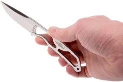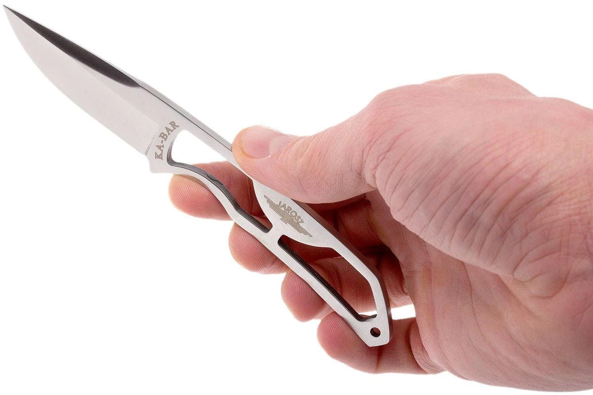 El KA-BAR Jarosz Rambler Skeleton es el resultado de la exitosa cooperación entre el diseñador de cuchillos Jesse Jarosz y el fabricante de cuchillos KA-BAR. El cuchillo es muy compacto y muy ligero. Es un cuchillo que puedes llevar fácilmente contigo sin que te moleste o te resulte demasiado intimidante. Puedes llevar fácilmente el cuchillo en la funda como cuchillo de cuello.