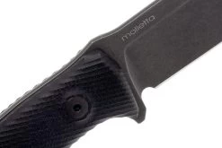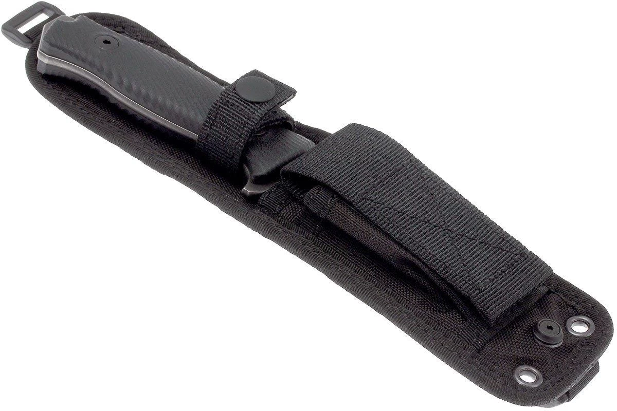 El LionSteel M5 es un cuchillo fijo de uso general. Este cuchillo puede ser utilizado como un cuchillo de supervivencia, pero también es un gran cuchillo de caza. La hoja de acero Sleipner está endurecida hasta 60-61 HRC. La longitud de la hoja de este cuchillo es de 11,5 cm. En el lomo de la hoja, alrededor de la transición del mango, se encuentra una pequeña parte que sobresale. Tan pequeña que apenas se nota, pero lo suficientemente grande como para ofrecer al pulgar más agarre. Todo el lomo tiene un bonito acabado, algo que se ve a menudo en los cuchillos italianos. El mango G10 está bellamente decorado y tiene surcos de agarre sutiles. Esto confiere al cuchillo un aspecto refinado y elegante.