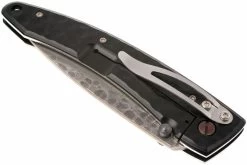 El Mcusta MC-114BD Forge Shadow es un notable cuchillo de caballero. Cuando está cerrado, la hoja de acero damasquino con acabado martillado luce muy bien en combinación con el mango negro, que también se ve realzado con este acabado martillado. Algo único que rara vez se encuentra en una navaja.