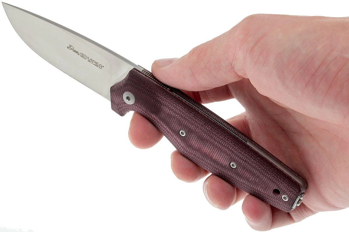La Viper Dan 1 es una elegante friction folder con un bonito clip de bolsillo. Una friction folder es una navaja plegable sin mecanismo de bloqueo real. Sin embargo, se nota cierta resistencia en la hoja que impide que se cierre. El flipper delantero abre el cuchillo fácilmente. En posición abierta, el flipper se encuentra en la parte posterior de la hoja, donde estaría el pulgar. Al presionar el pulgar, la hoja se mantiene abierta durante su uso. Las Friction folders son populares en el Reino Unido y Alemania porque pueden llevarse legalmente. Además, por supuesto, también es un mecanismo hermoso que muchas personas consideran un gran activo.